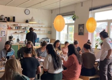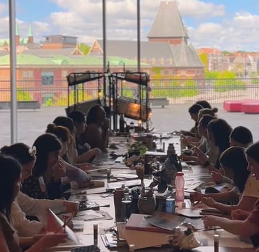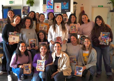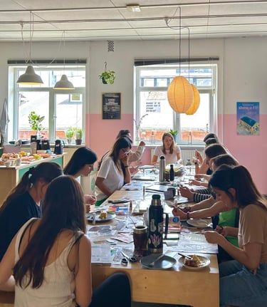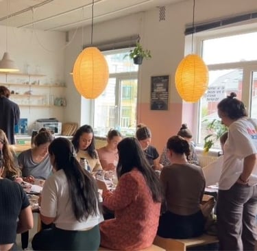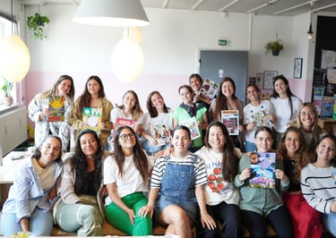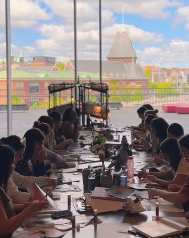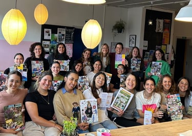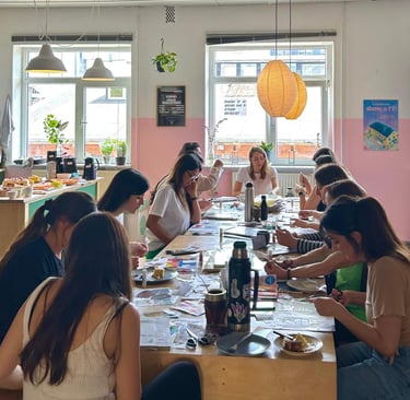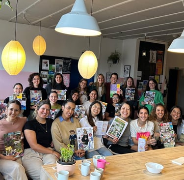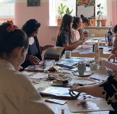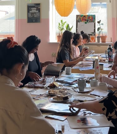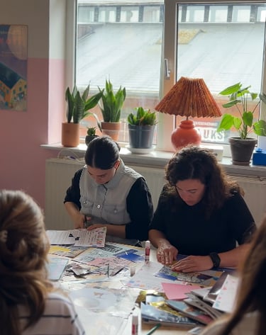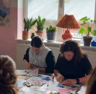 I design and host creative workshops that bring people together through art, play, and reflection. From collage afternoons to painting sessions, I create safe and inspiring spaces where participants connect with their creativity and with each other. Each event is carefully curated, from the concept and materials to the experience itself, with groups ranging from intimate circles to 25+ participants.