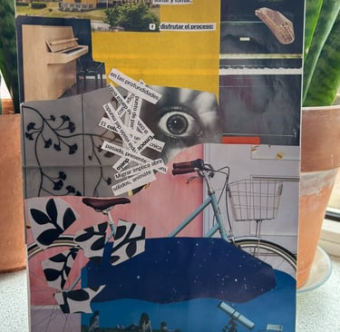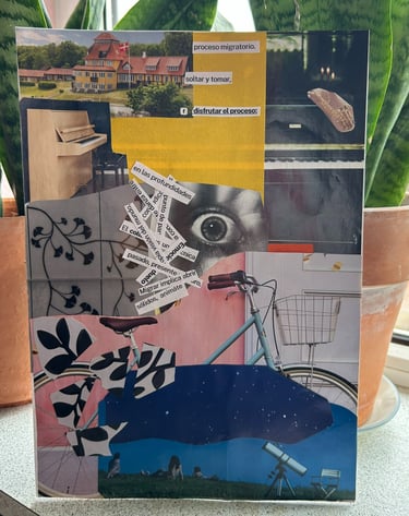 Collage & Migratory Emotions was a special workshop held in Spanish, where collage became a tool to express the feelings, challenges, and inner movements that come with migration. It offered a safe and expansive space where participants could create, share, and be heard.